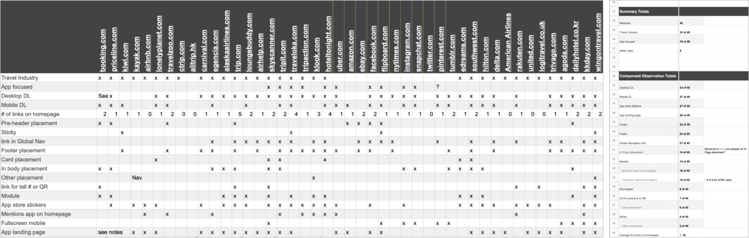 MAD Components began with in-depth research. The UX Writer and I thoroughly explored Expedia’s top-performing value propositions, guest/user journeys, and pain points. Additionally, we conducted an extensive global audit to gain insights into how competitors and industry leaders approached the promotion of mobile app downloads.