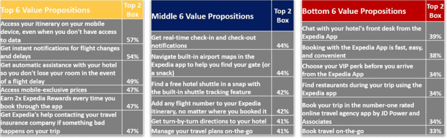 Top performing value propositions