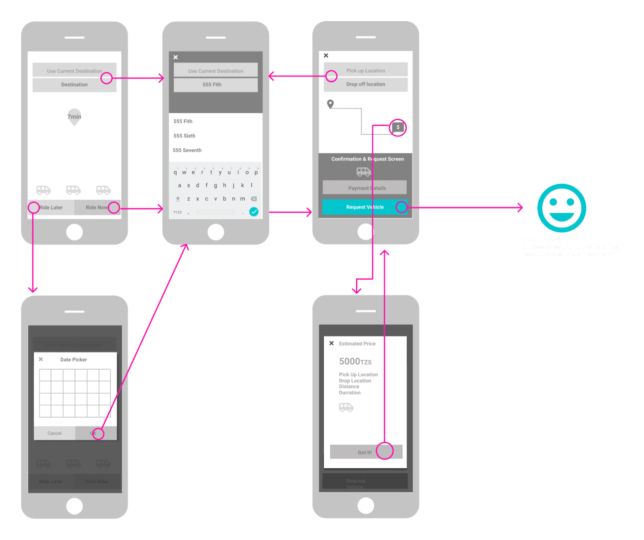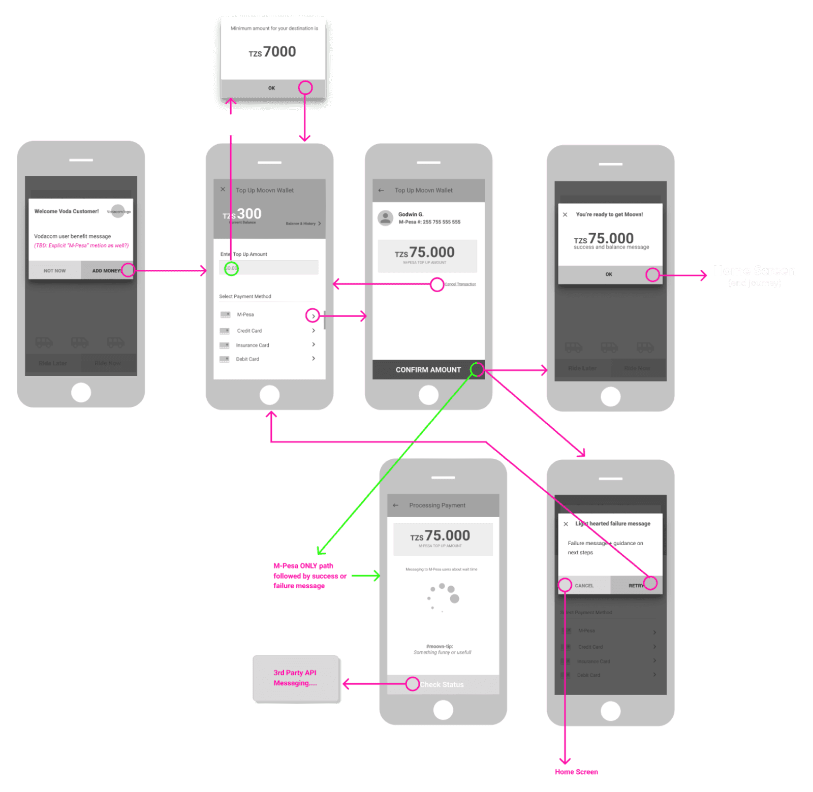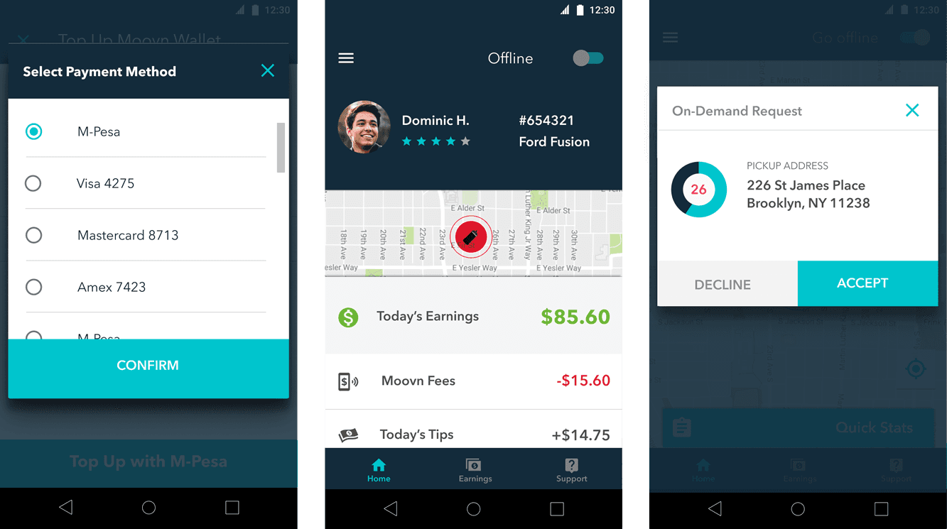 In Africa, Moovn facilitates diverse payment options, including Credit, Debit, Mobile Money (such as M-Pesa and others], and Cash. I led the efforts in researching and mapping out Cash based transactions, prioritizing the safety of both drivers and passengers. These insights were instrumental in planning and designing several screens below, ensuring a secure and seamless experience for all users.