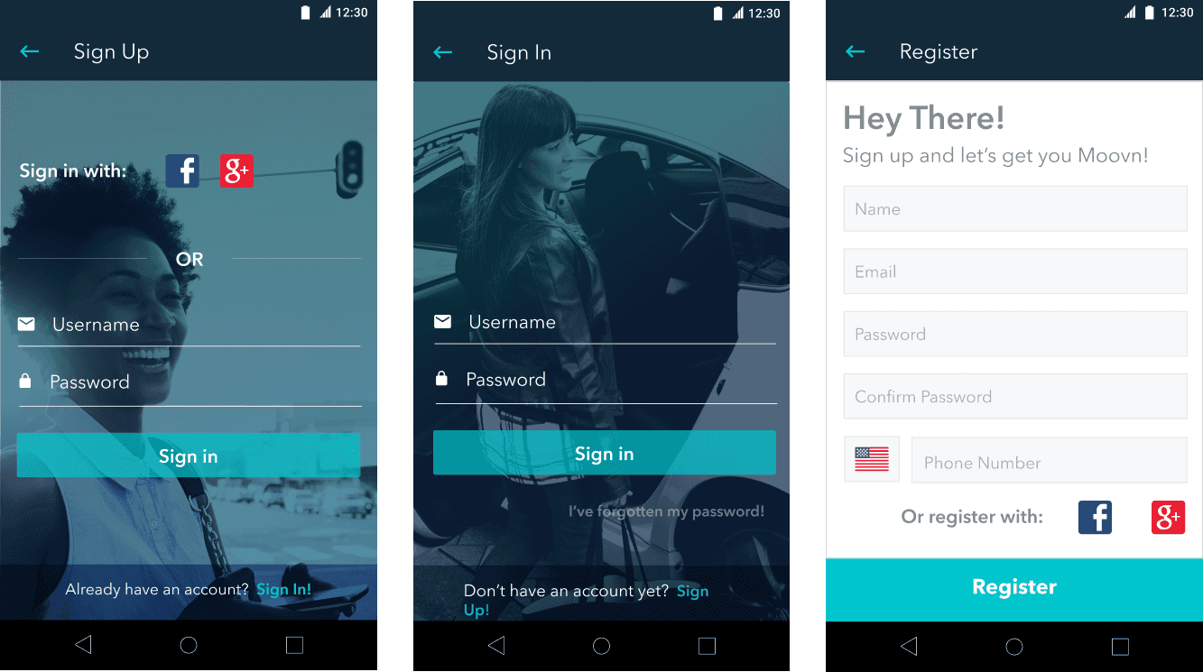 Moovn sets itself apart by enabling passengers to schedule rides in advance. Acknowledging that users often utilize multiple ridesharing apps, I prioritized addressing the cognitive load associated with switching between them. Balancing Moovn's distinct features and brand differentiation without overwhelming users with a new interface proved challenging. Through testing, I crafted a unique experience that maintained familiarity, ensuring a seamless transition for passengers without cognitive overload.