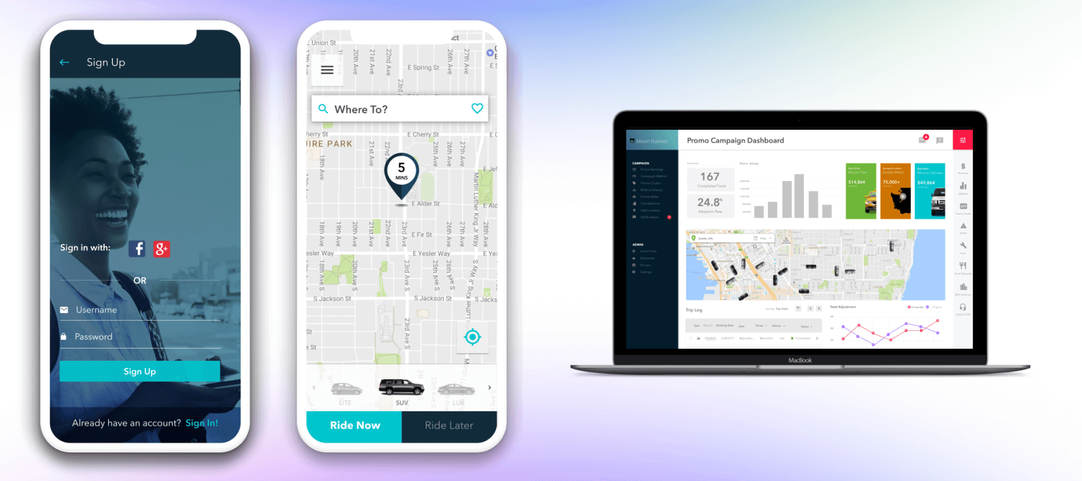 Moovn is a scrappy, innovative Seattle based ride-share company that competes directly competes with Uber and Lyft in Seattle and East Africa for the hearts and minds of passengers and drivers. Through direct empathetic engagement with our drivers and quirky, consumer facing design we’ve driven exponential user growth.
